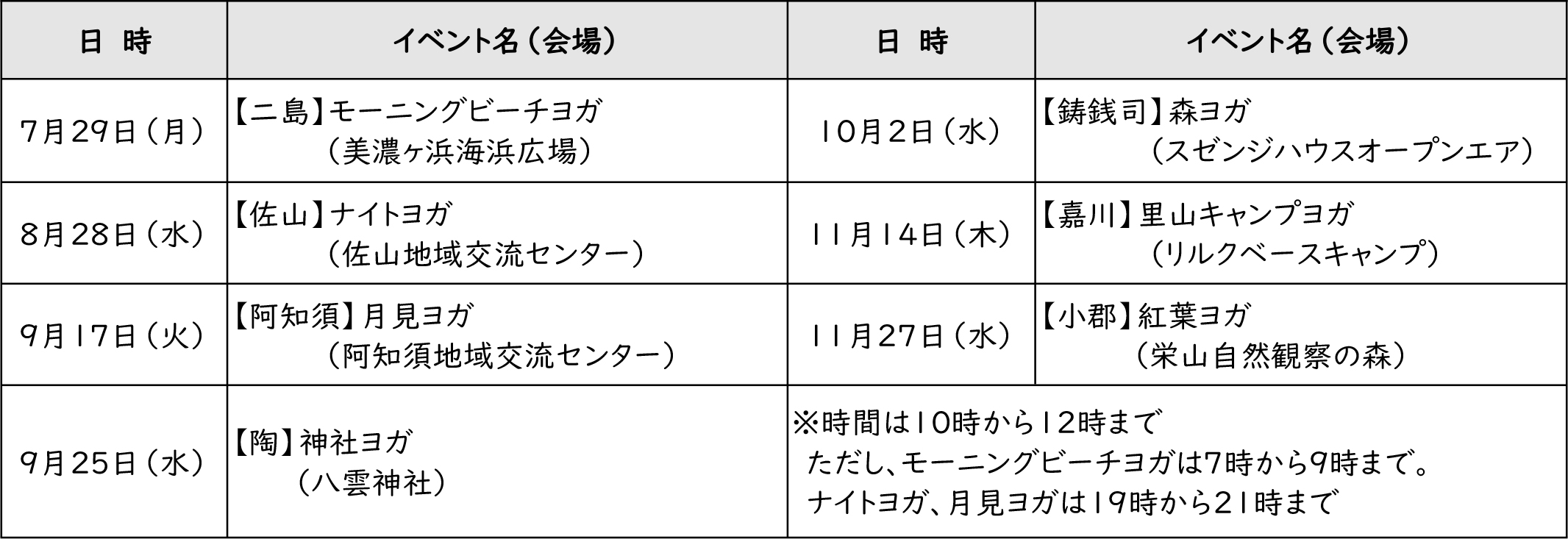 〇持 参 物 ヨガマット、タオル、飲み物、レジャーシート